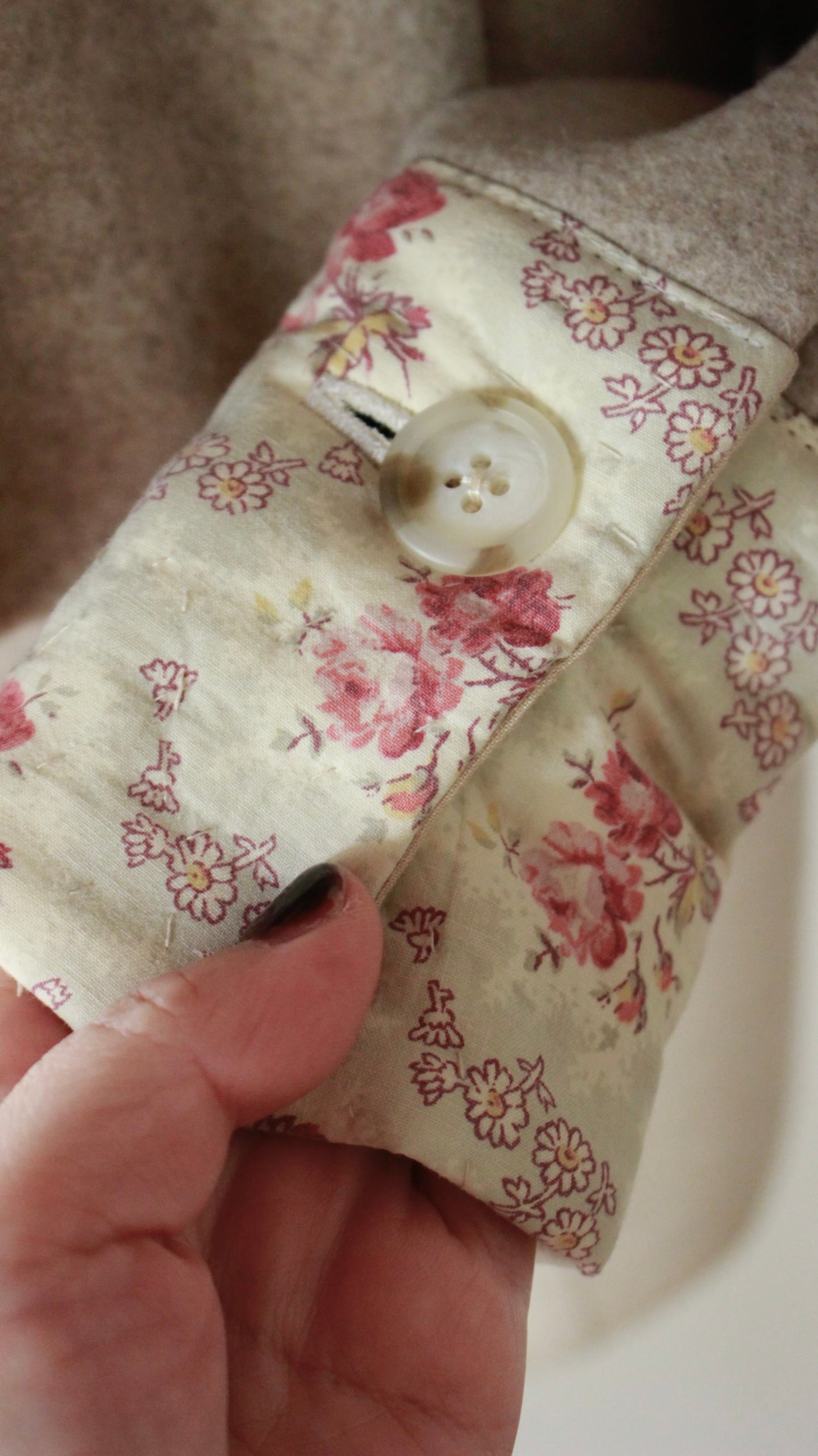ショートコートですが、総裏地なのでとても暖かく、身幅もたっぷりめに作っているので中にニットを着こんでもストレスなく着用できます。