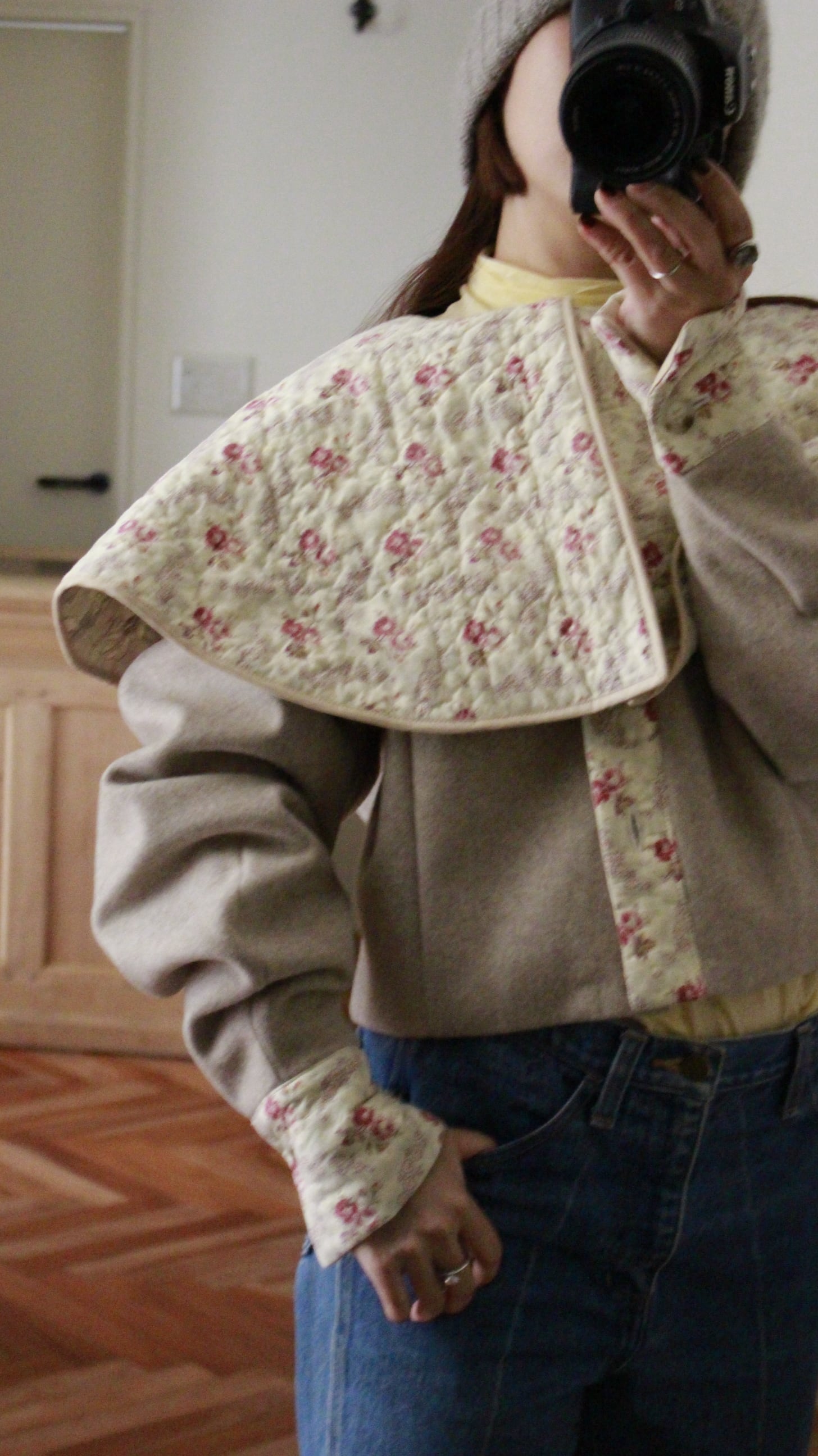 ウールとキルトのコンビネーションジャケット。