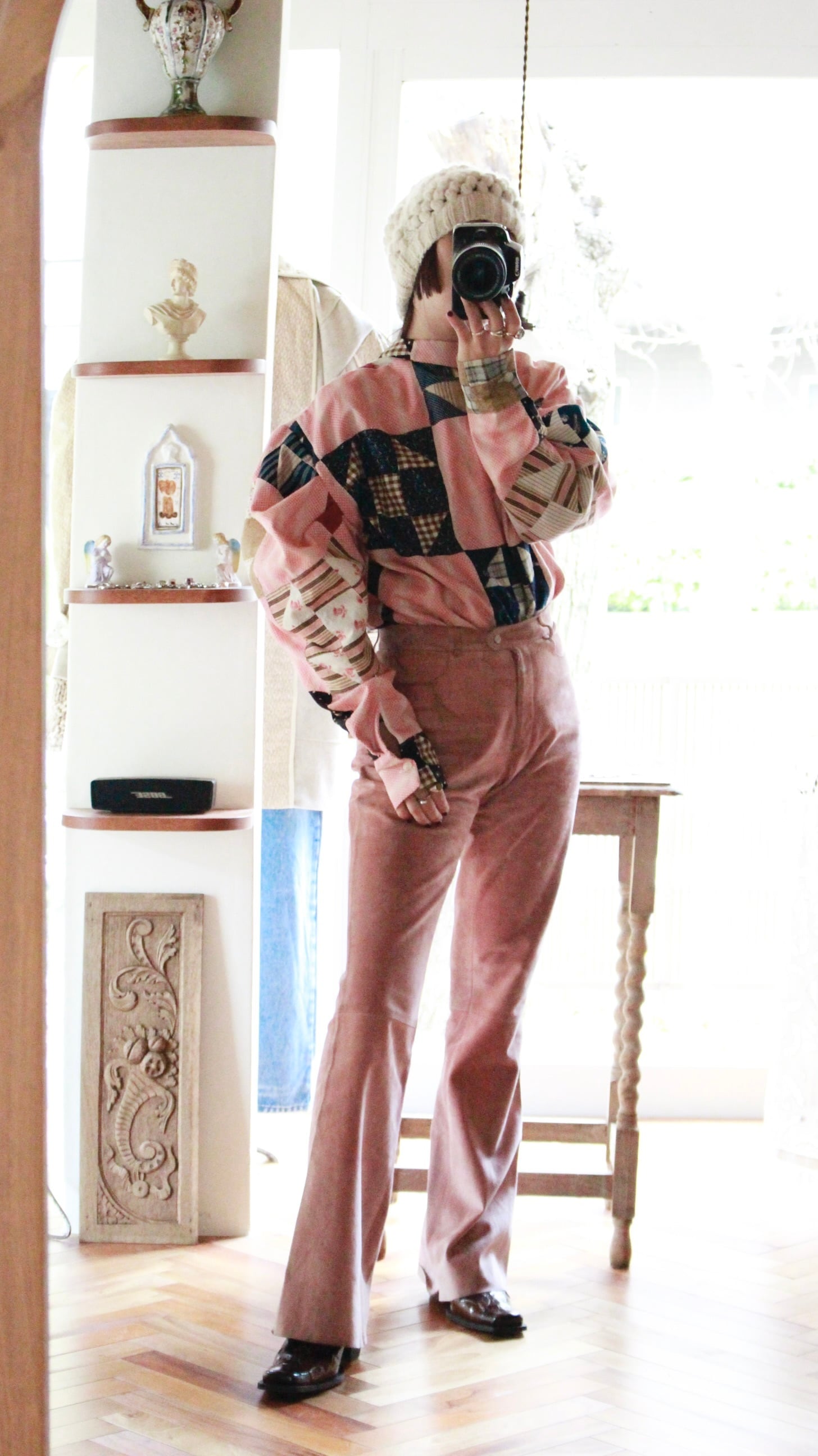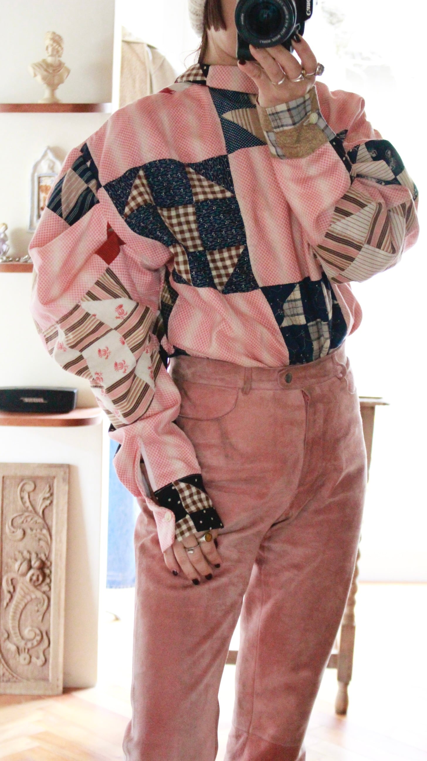 ※パッチワークは新しい生地と一緒に2枚構造で仕上げているため、裏が肌に当たったり、パッチワークの縫い代が裏から見えることはございません。